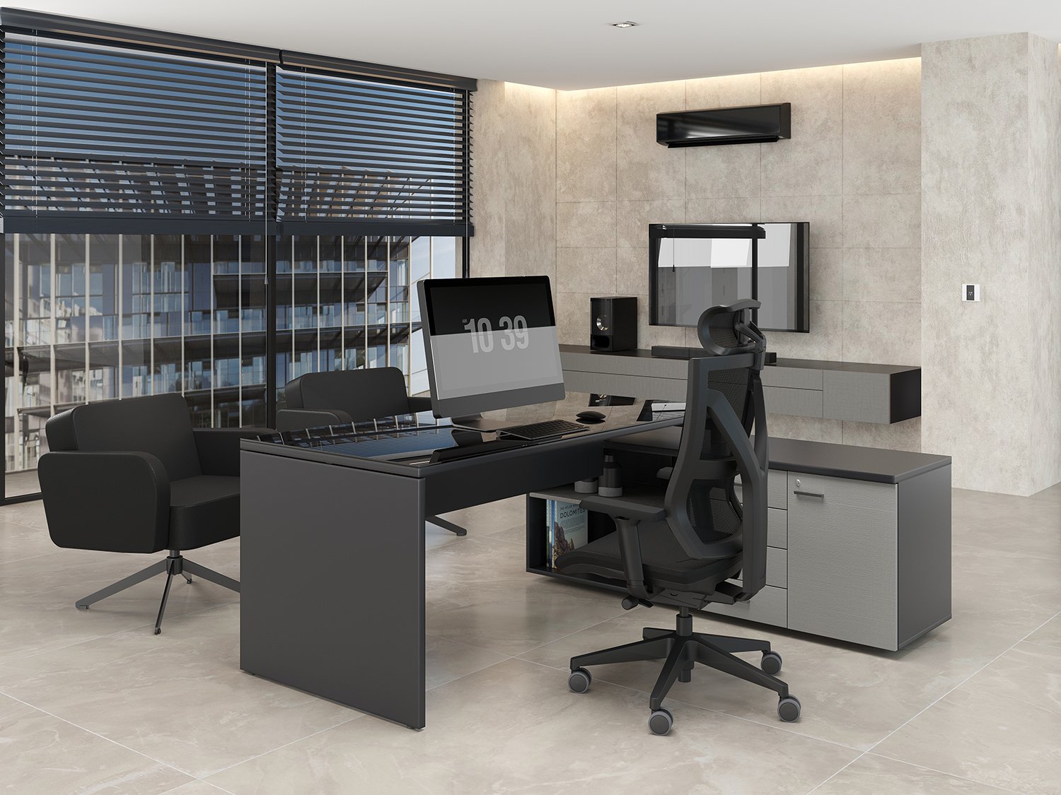 Rodízios PU (poliuretano), proporcionando deslizamento suave, silencioso e proteção total ao piso corporativo