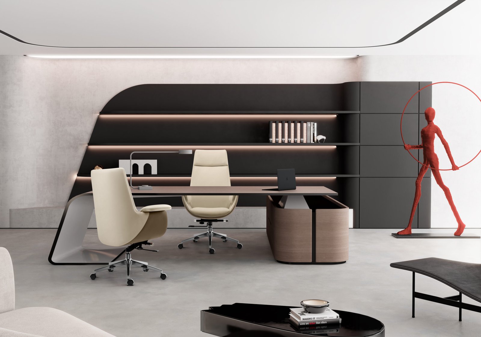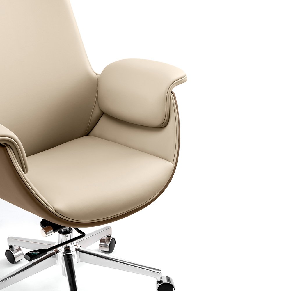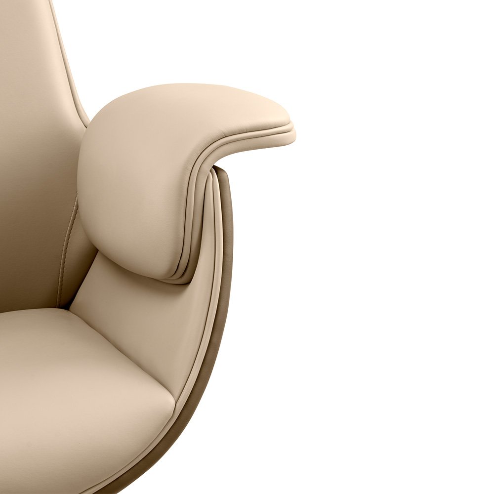 Poltrona Melfi que une design sofisticado e máximo conforto, ideal para escritórios executivos que valorizam estilo e bem-estar.