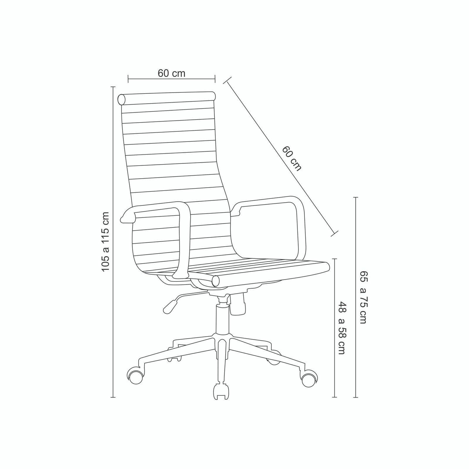 | Assento | Revestido em couro ecológico, oferecendo sustentação confortável, durabilidade e acabamento sofisticado para sessões prolongadas de trabalho |