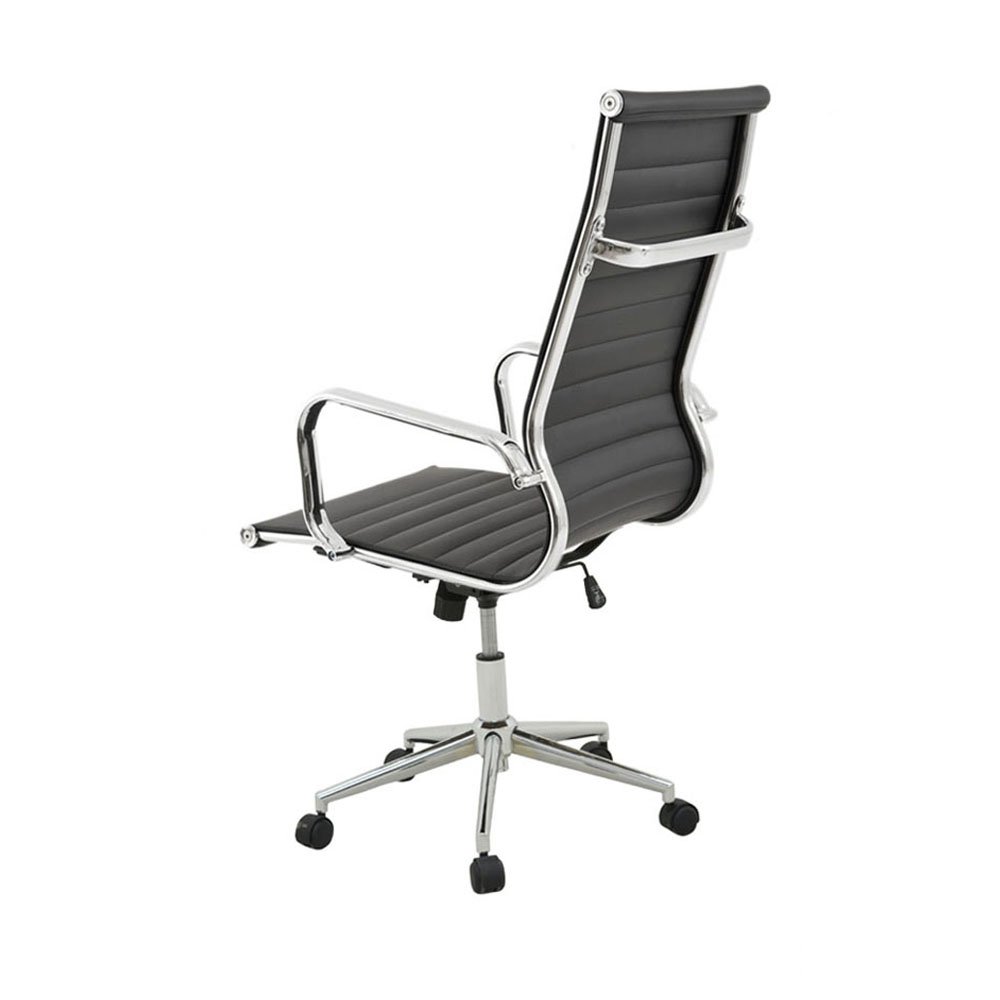 A cadeira Sevilha une elegância, conforto e resistência. Com revestimento em couro ecológico e costuras horizontais, possui base e detalhes em aço cromado que garantem durabilidade. Os braços estofados e o sistema relax proporcionam conforto ideal para longas jornadas. Sofisticação e ergonomia para qualquer ambiente profissional.